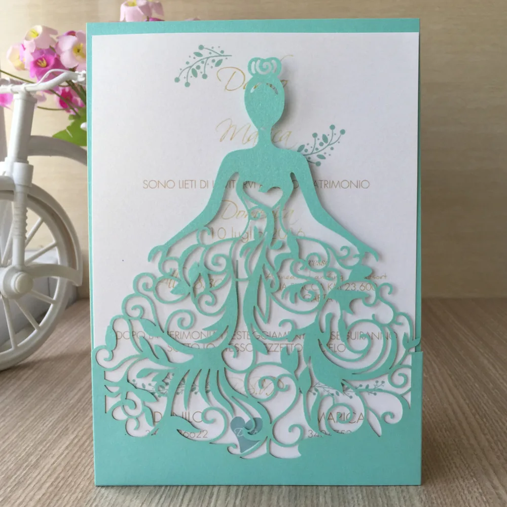 Us 21 75 13 Di Sconto 50 Pz Lotto All Ingrosso Bella Tiffany Blue Laser Cut Inviti Battesimo Invito Ragazza Invito Per Il Favore Di Partito