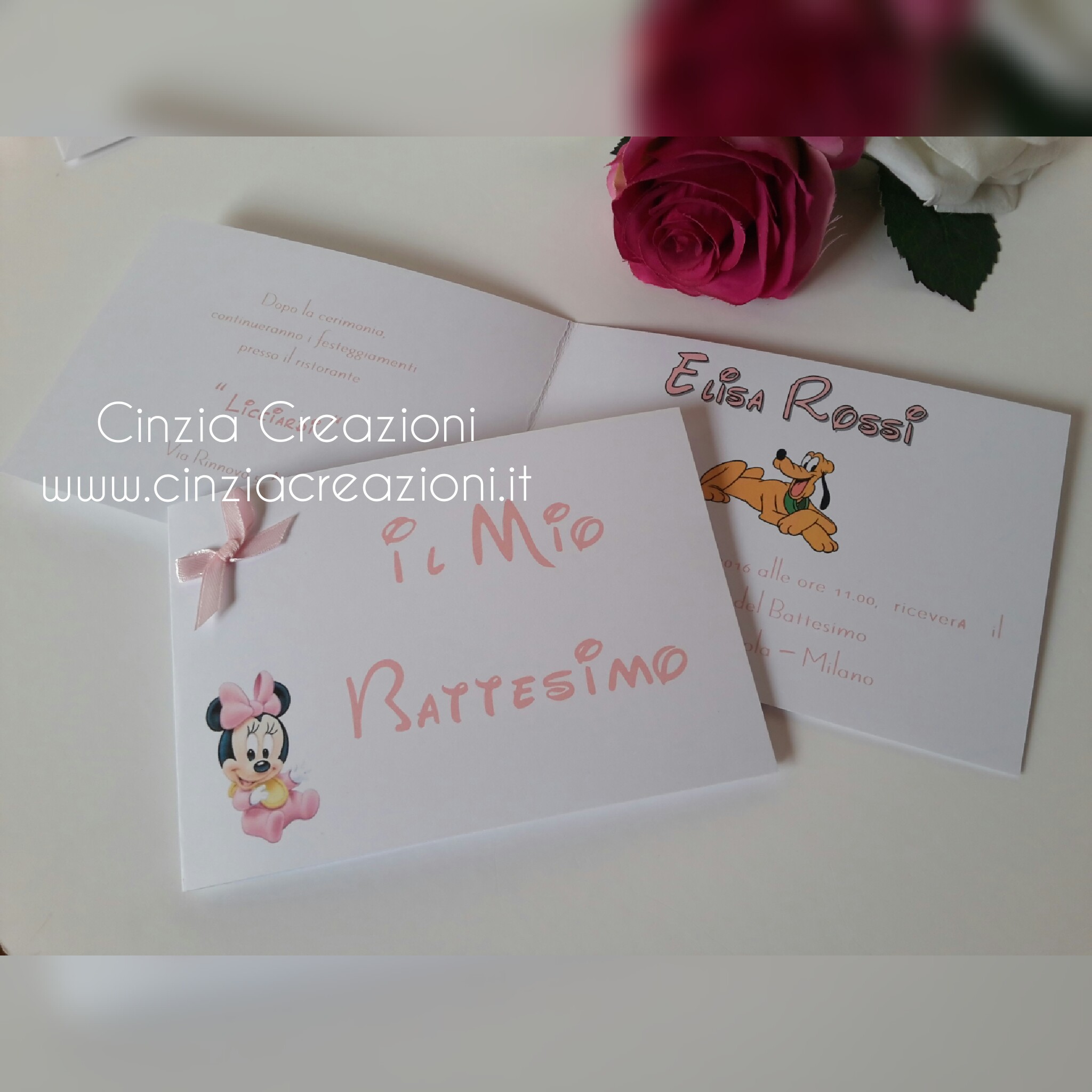 Invito Santo Battesimo Minnie Personalizzato Inviti Battesimo