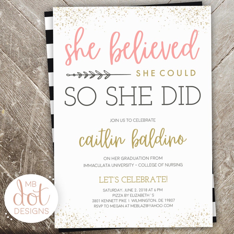 Ha Creduto Lei Potrebbe Cosi Ha Fatto Rosa E Invito Laurea Oro Con Strisce High School College Professione D Infermiera Stampa Digitale