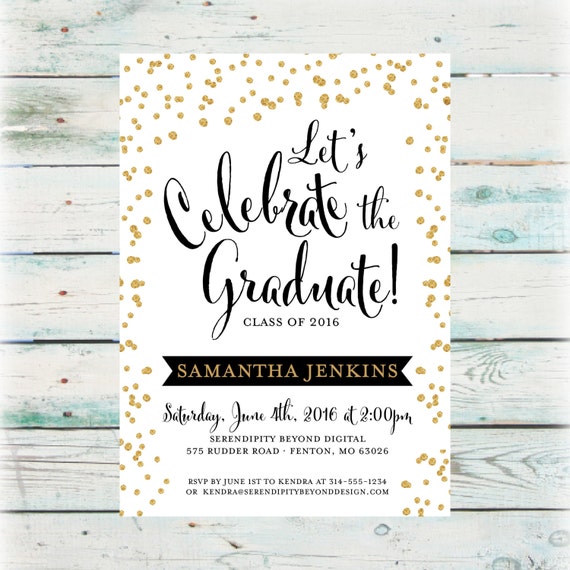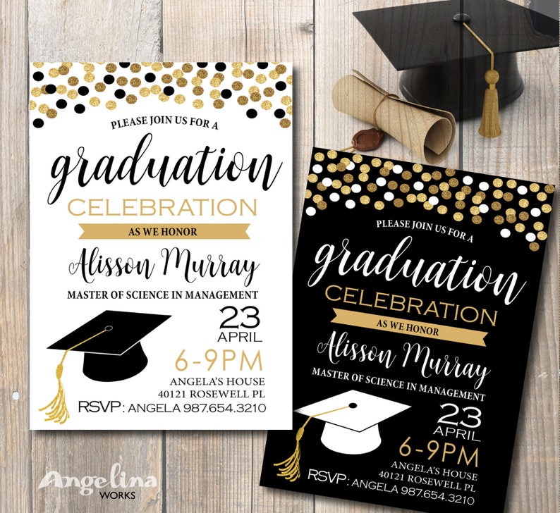 Invito Laurea Oro Nero E Bianco Coriandoli Caduta Stampabile Card Personalizzato Laurea Annuncio
