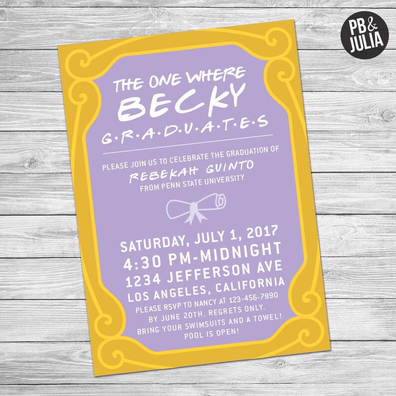 Invito Di Amici Tv Show Laurea Invitare Gli Amici Tv Festa Di Laurea Unilaterale Stampabile The One Where Digital Download
