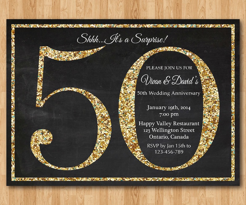 Cinquantesimo Invito Di Anniversario Di Matrimonio A Sorpresa Glitter Oro Oro Bianco E Nero Ogni Anni Lavagna Stampabile Digitale
