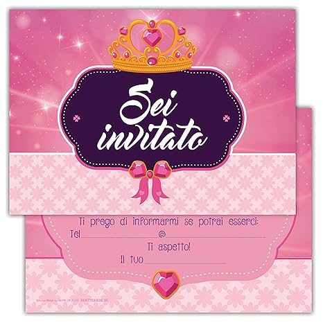 Partycards Set Di 12 Inviti Compleanno Biglietti Invito Per Festa Compleanno Per Bambini E Adulti In Italiano Principessa Corona