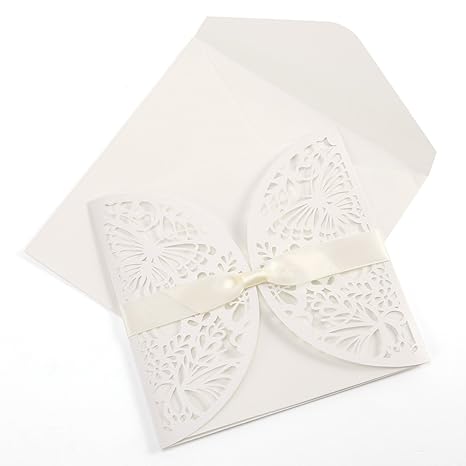 20pz Invito Partecipazioni Matrimonio Banchetto Di Nozze Cena Festiva Laser Cut Carta Vuota Con Busta Nastro Biglietto D Invito