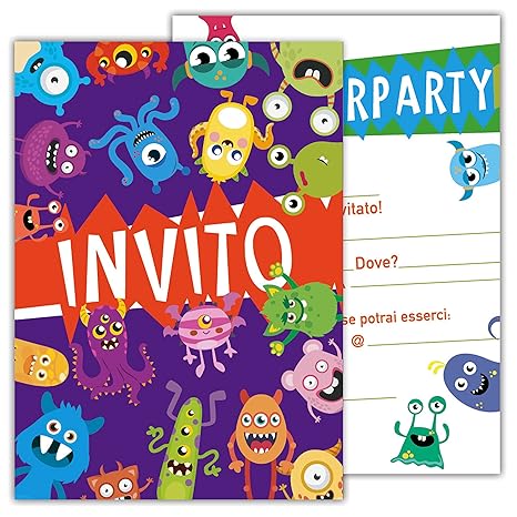 Partycards Set Di 12 Inviti Compleanno Biglietti Invito Per Festa Compleanno Per Bambini E Adulti In Italiano Piccoli Mostri