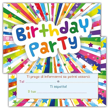 Set Di 12 Inviti Compleanno Biglietti Invito Per Festa Compleanno Per Bambini E Adulti In Italiano Birthday Party